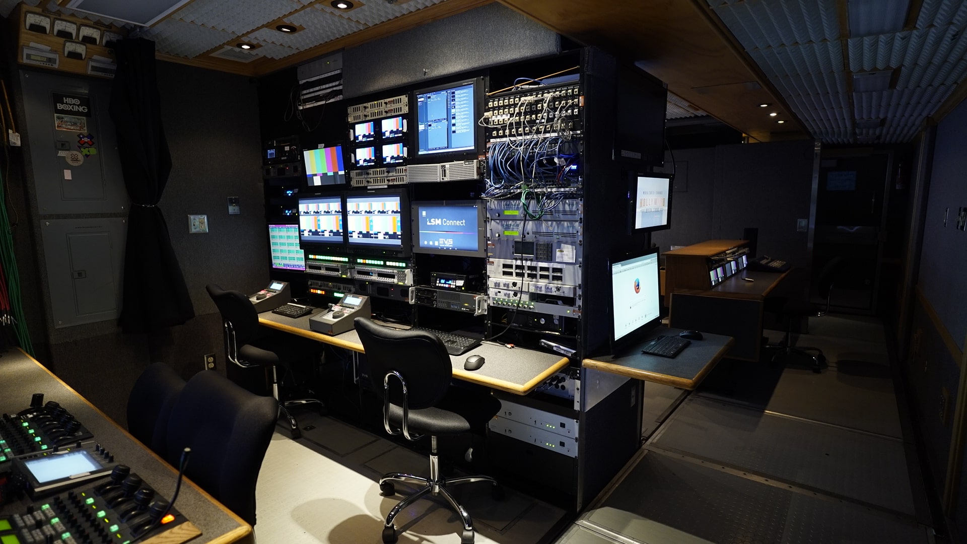 We’re a one-stop destination available to provide you with all the logistics and engineering needs of your next production. Our experienced on staff professionals help with planning, venue or location scout, types of lenses, number of cameras needed, recording formats, playback machines, staging, transmission and other needs you may have. HRS Mobile is a subsidiary of Thunder Studios that can also provide you studio space for your next production.