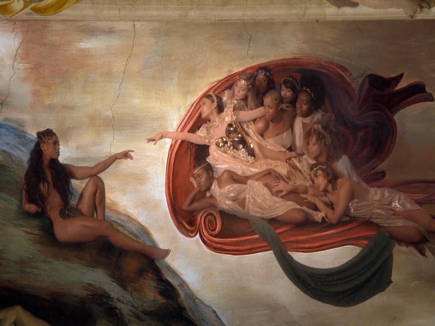 The talented Alexa Meade joined the team to create a 2-D to 3-D oil painting effect, adding an iconic /classic / biblical factor to the piece. In it the literal larger-than-life Ariana dances in the midst of a nebula while standing on Earth in one scene, floating in ethereal milky water covered in pastel paint in another (Idolator, 2018).