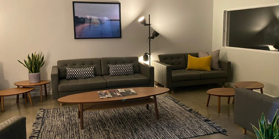 Located in the Great Hall, this meeting room is easily accessible and adjacent to Stages 1-3 as well as the craft service bar. The roll-up garage door can be closed for private meetings or kept open to create an elevated agency video village experience and additional casual lounge space for your team.
